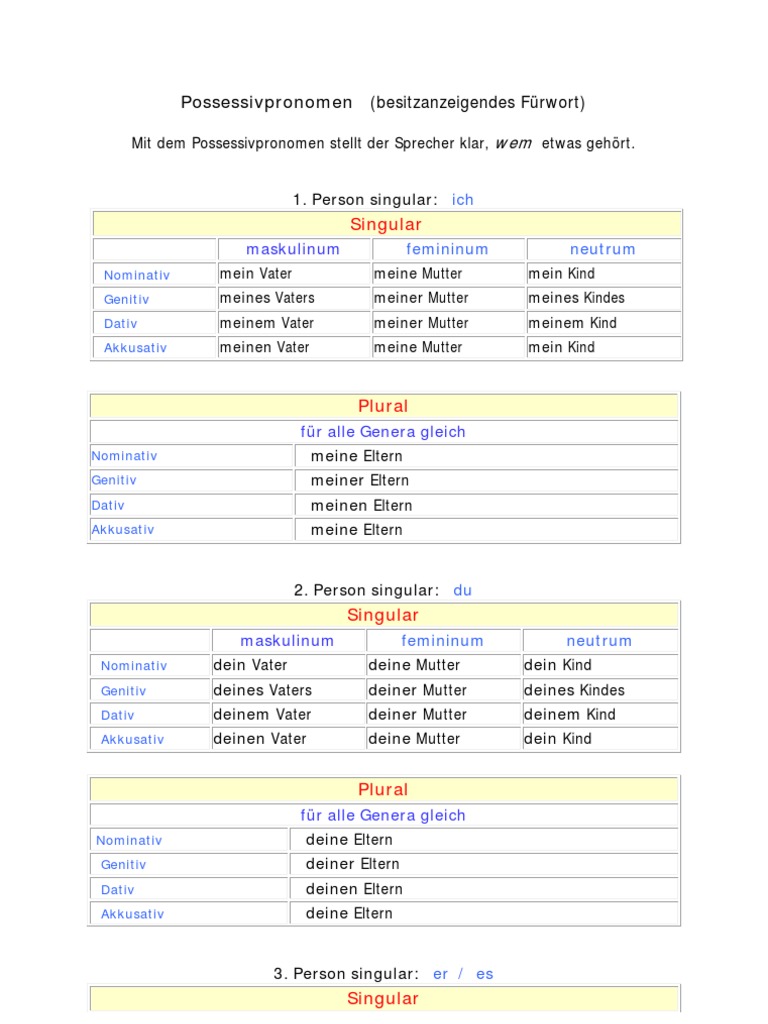 Possessivpronomen / Grammatikubersicht Personalpronomen Und Possessivpronomen : Check spelling or type a new query.. We did not find results for: Check spelling or type a new query. Maybe you would like to learn more about one of these?